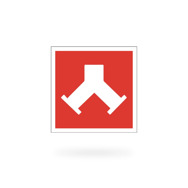 O Sinal de União Siamesa assinala a localização do ponto de conexão para abastecimento de água no combate a incêndios. Disponível em vinil autocolante ou PVC de 3 mm, garantindo alta visibilidade e conformidade com as normas de segurança em vigor.